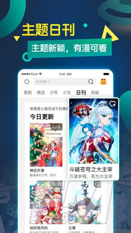 1.让你通过各种主题精准阅读自己喜欢的漫画,也可以订阅版块,切换男生版和女生版的综合漫画平台;